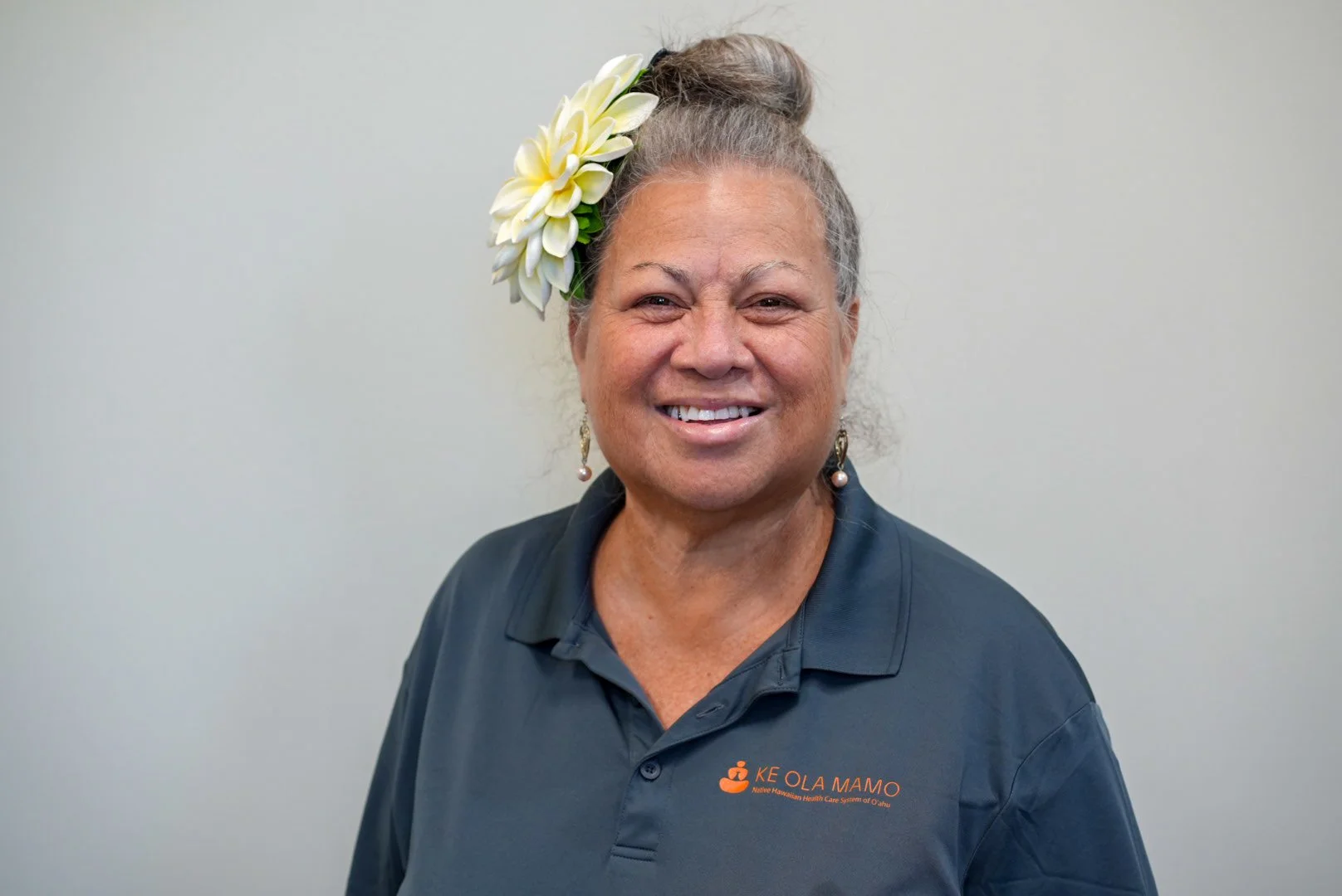 Kaʻala Mokulehua, affectionately known as "Aunty Kaʻala," is the Community Health Outreach Worker for Ke Ola Mamo in the Koʻolaupoko area of Oʻahu. She serves Native Hawaiians and others from Waimānalo to Kualoa Point.